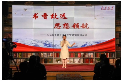 來自山東新華書店集團(tuán)有限公司棗莊分公司的閱讀推薦人耿月君以《書香致遠(yuǎn) 思想領(lǐng)航——在習(xí)近平總書記著作中感悟閱讀力量》為題,循著《習(xí)近平講故事》《習(xí)近平的七年知青歲月》等著作的脈絡(luò),探尋總書記的讀書足跡,汲取奮進(jìn)前行的力量。